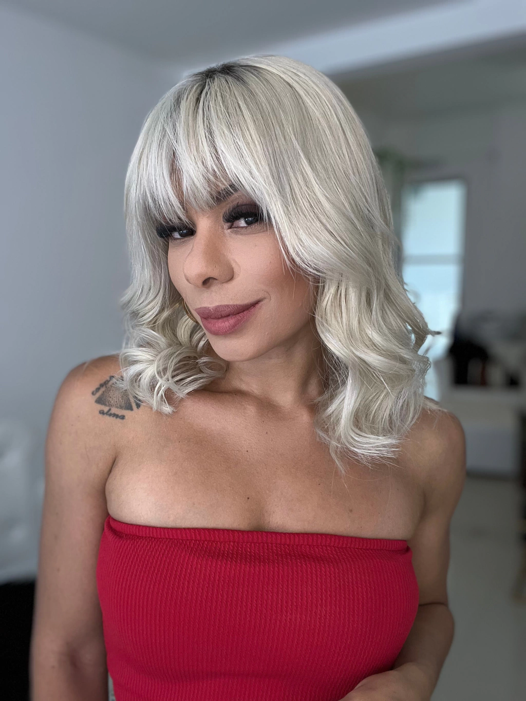 - Cor: loira com raiz esfumada (escolher tonalidade do loiro e tamanho da raiz)